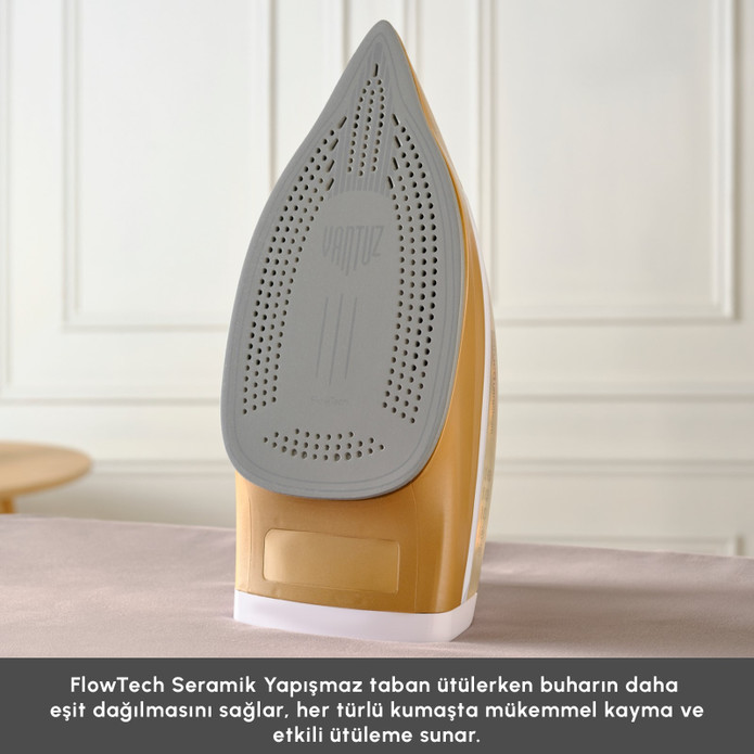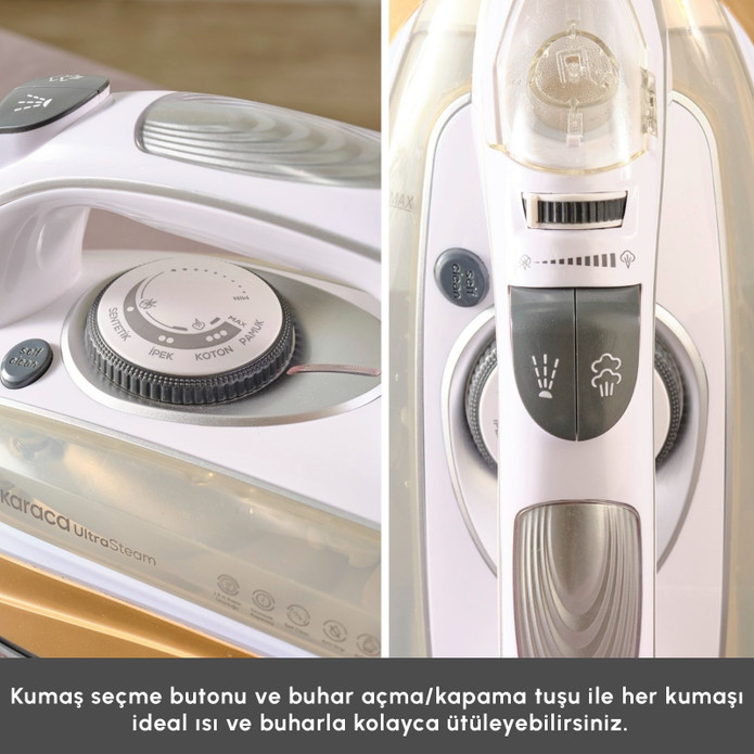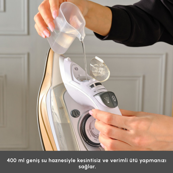 اتو کاراجا با قدرت بالای 3000 وات خود در کمتر از 1 دقیقه به سرعت گرم می شود. با بخار مداوم 50 گرم در دقیقه به راحتی و به سرعت تمامی چروک های هنگام اتو را از بین می برد. به لطف ویژگی تقویت بخار 220 گرم در دقیقه، سرسخت ترین چین و چروک ها را از بین می برد و اتوی عمودی موثری را امکان پذیر می کند. تنظیم دما را می توان از طریق دیجیتال کنترل شده با لمس انجام داد. با ظرفیت مخزن آب 400 میلی لیتری، گارانتی طولانی مدت اتو را ارائه می دهد. با ویژگی زیره مروارید 485 سوراخی خود، بخاری که از همه سوراخ ها به مقدار مساوی خارج می شود، در نقاط بیشتری با لباس های شما تماس پیدا می کند و بنابراین اتوکشی سریع و آسان را در یک حرکت فراهم می کند. به لطف فناوری دو کفی پوشش PearlFlow روی کفی سرامیکی، بخار به سطح نفوذ می کند تا عمیق تر و یکنواخت تر اتو شود. با سیستم بخار خودکار، با افزایش دما، میزان بخار به طور خودکار افزایش می یابد. بنابراین، پارچه های شما با چروک های بیشتر را می توان به راحتی اتو کرد. با طراحی دقیق کفی خود، اتوکشی آسان را حتی بر روی باریک ترین سطوح فراهم می کند. ویژگی های دیگر به لطف ویژگی Self Clean خود، ذرات آهک، باقی مانده ها و مواد خارجی تشکیل شده در اتو شما را به خودی خود تمیز می کند. این ویژگی امکان استفاده از آب لوله کشی را فراهم می کند. سیستم خاموش شدن خودکار که در چند دقیقه پس از رها شدن اتو فعال می شود، به طور خودکار اتو شما را خاموش می کند و باعث صرفه جویی در مصرف انرژی و استفاده ایمن می شود. با خاصیت ضد چکه که دارد، آب را از کف نشت نمی کند. از چکیدن آب و لکه دار شدن روی پارچه در هنگام اتو کردن جلوگیری می کند. با وزن 1.45 کیلوگرمی خود امکان اتوکشی بدون خستگی را فراهم می کند. با طول کابل 2 متری خود حرکت را آسان می کند.