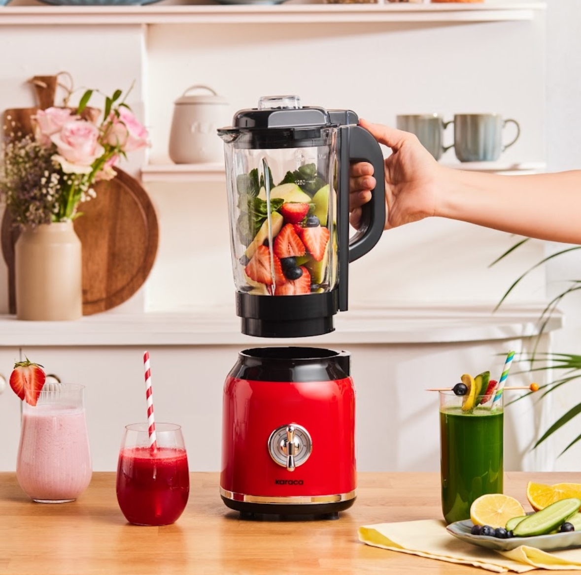 با کاسه ضد نشتی و درب نگهداری آن، می توانید به راحتی هر کجا که می روید آن را در کیف خود ببرید و هر زمان که خواستید اسموتی خود را بنوشید. به راحتی می توان آن را با حلقه حمل در پوشش ذخیره سازی به همه جا حمل کرد. مخزن بزرگ 1500 میلی لیتری شیشه ای آن فاقد هرگونه مضرات غیر استاندارد است. به این ترتیب یک فرصت استفاده سالم را به شما ارائه می دهد. با 6 تیغه استیل ضد زنگ می توانید سبزیجات و میوه ها را به سرعت خرد کرده و مخلوط کنید. به لطف ویژگی خرد کردن یخ، تمام نوشیدنی های یخی شما به راحتی قابل تهیه هستند. با 2 رنگ مختلف و طراحی عالی با آشپزخانه شما سازگار می شود. دارای گزینه سرعت قابل تنظیم 2 درجه ای است. با پایه های ضد لغزش روی سطوحات ثابت می شود.