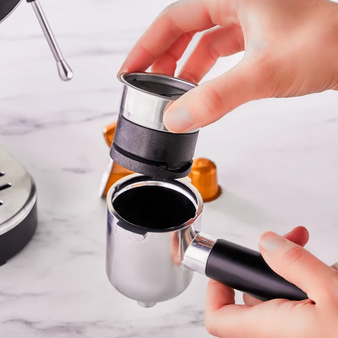 یک دسته باریستا اضافی در جعبه مناسب برای استفاده از قهوه کپسولی وجود دارد.