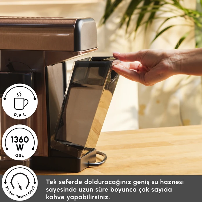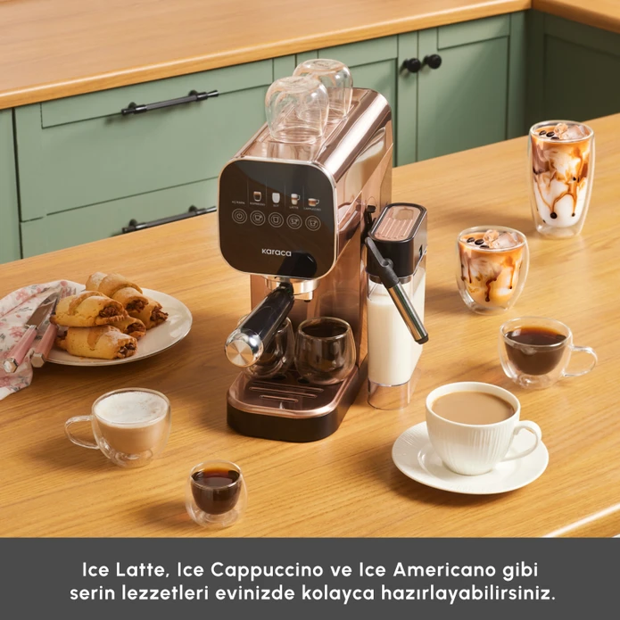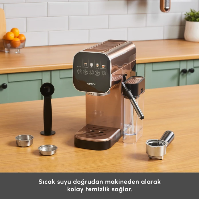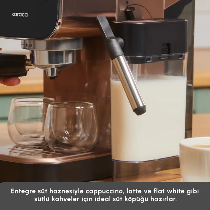 نوشیدنی هایی مانند شیر، شکلات داغ را گرم کنید. با مخزن آب 900 میلی لیتری و یک مخزن جداگانه برای شیر نیم لیتری اسپرسوساز کاراجا می توانید