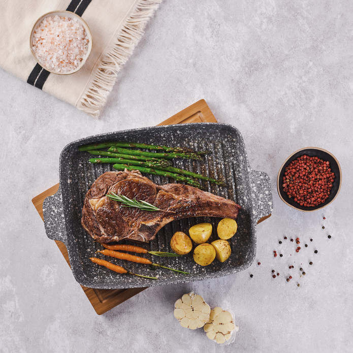 تابه گریل امسان مدل Perge که به دلیل مواد ساخته شده از گرانیت آلمینیوم میتوانید غذاهای رژیمی درست کنید.