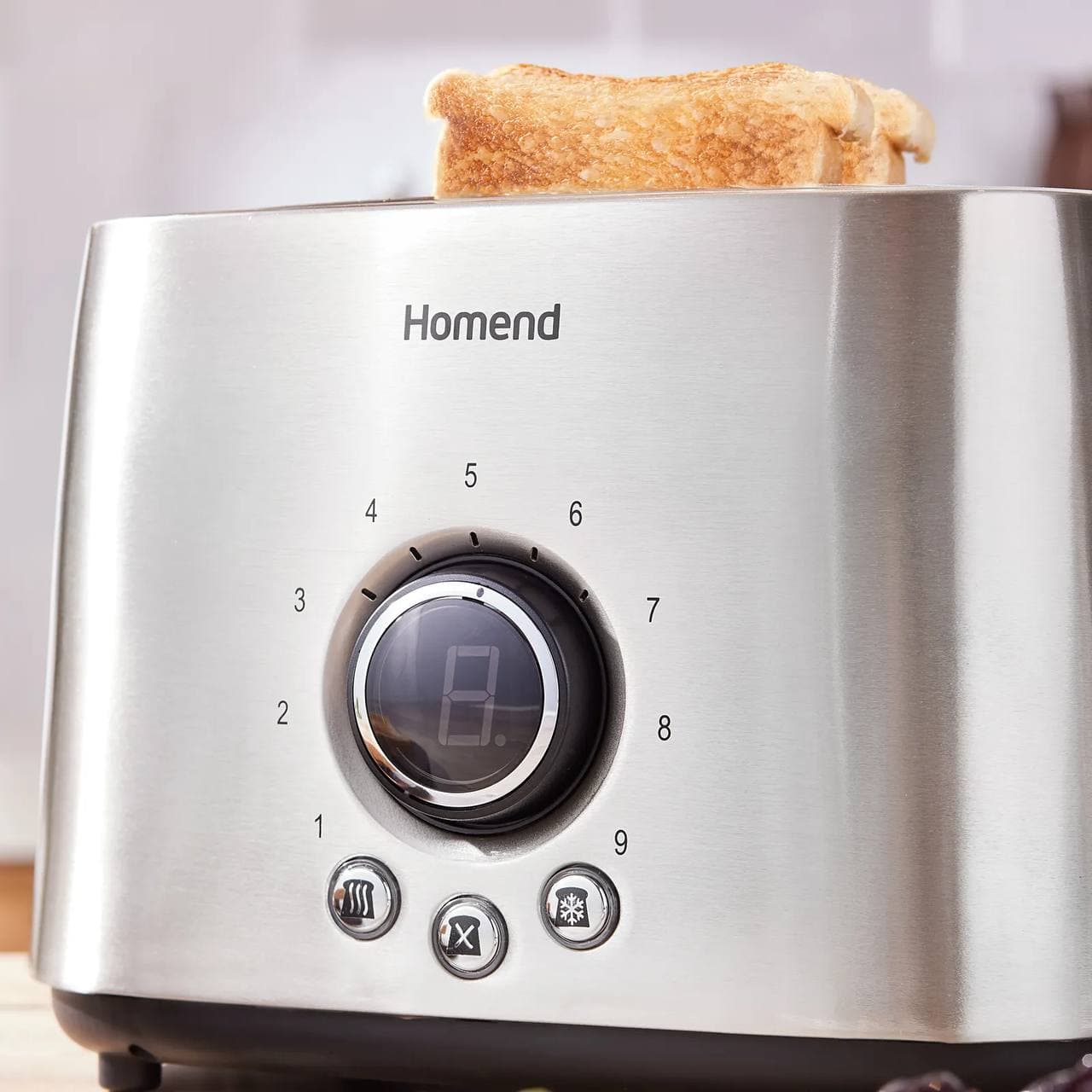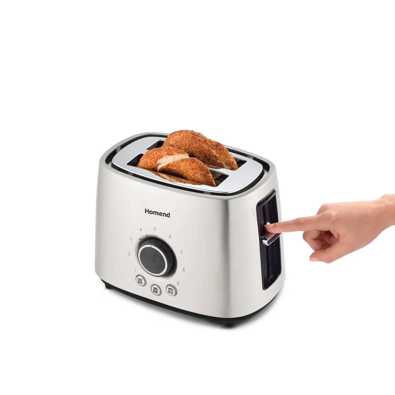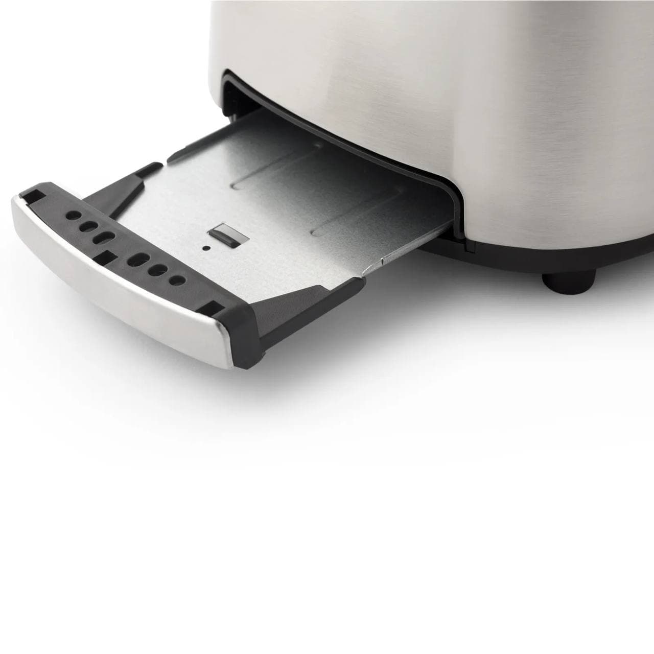 تسترنان 2 اسلایسر که می توانید 2 برش کوچک نان را همزمان برشته کنید. با طراحی فوق العاده زیبا و بدنه استیل ضد زنگ فضایی شیک به آشپزخانه شما می بخشد. به لطف ویژگی مرکز خودکار نان، تمام قسمت های نان شما را به طور یکنواخت برشته می کند. با عملکردهای یخ زدایی، گرم کردن و سوخاری کردن، امکان استفاده چند منظوره در یک محصول را دارید. با 9 سطح سرعت مختلف سرخ کردنی می توانید در اندازه دلخواه سوخاری کنید.با قابلیت داشتن صفحه نمایشی LED میتوانید وضعیت دما و سرعت دستگاه را کنترل کنید و همچنین یک محفظه برای جمع کردن خرده نان زیر دستگاه تعبیه شده که بصورت کشویی باز میشود برای تمیز کردن .