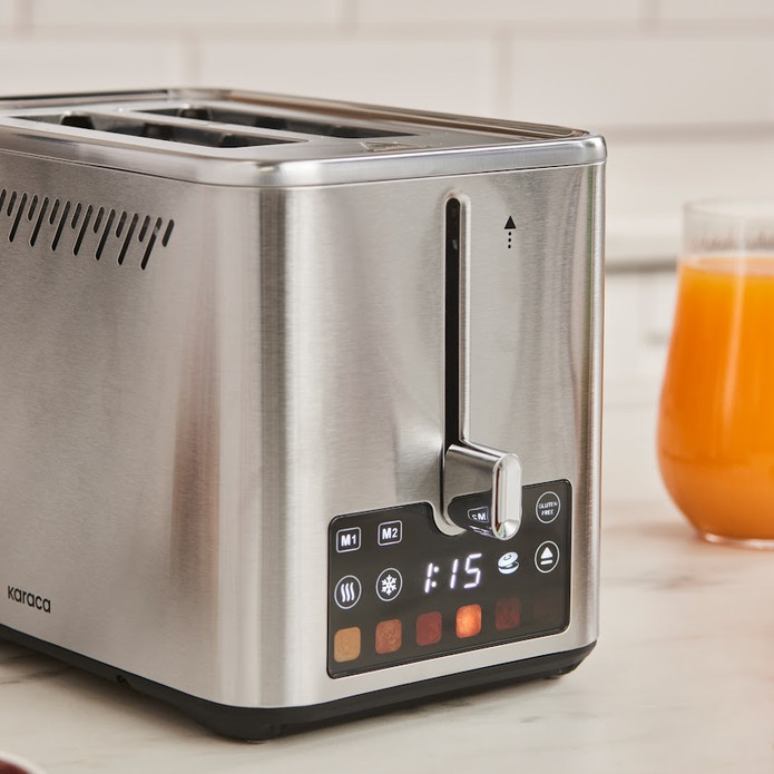 تسترنان 2 اسلایسر که می توانید 2 برش کوچک نان را همزمان برشته کنید. با طراحی فوق العاده زیبا و بدنه استیل ضد زنگ فضایی شیک به آشپزخانه شما می بخشد. به لطف ویژگی مرکز خودکار نان، تمام قسمت های نان شما را به طور یکنواخت برشته می کند. با عملکردهای یخ زدایی، گرم کردن و سوخاری کردن، امکان استفاده چند منظوره در یک محصول را دارید. با 7 سطح سرعت مختلف سرخ کردنی می توانید در اندازه دلخواه سوخاری کنید. یک محفظه برای جمع کردن خرده نان زیر دستگاه تعبیه شده که بصورت کشویی باز میشود برای تمیز کردن .