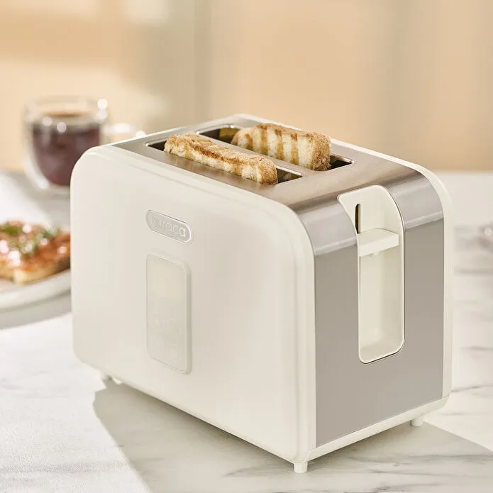 تسترنان 2 اسلایسر که می توانید 2 برش کوچک نان را همزمان برشته کنید. با طراحی فوق العاده زیبا و بدنه استیل ضد زنگ فضایی شیک به آشپزخانه شما می بخشد. به لطف ویژگی مرکز خودکار نان، تمام قسمت های نان شما را به طور یکنواخت برشته می کند. با عملکردهای یخ زدایی، گرم کردن و سوخاری کردن، امکان استفاده چند منظوره در یک محصول را دارید. با 7 سطح سرعت مختلف سرخ کردنی می توانید در اندازه دلخواه سوخاری کنید. یک محفظه برای جمع کردن خرده نان زیر دستگاه تعبیه شده که بصورت کشویی باز میشود برای تمیز کردن .دارای صفحه دیجیتال و دکمه های لمسی