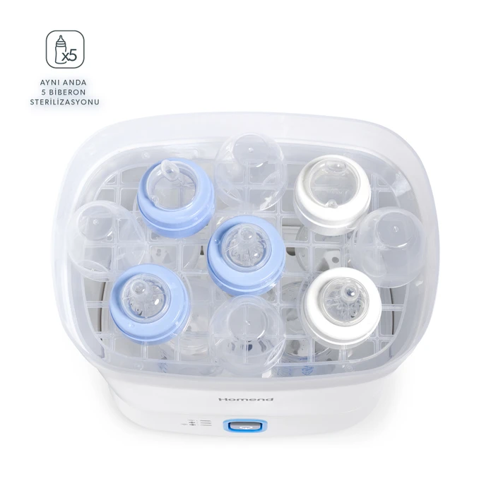 استریل کننده بخار شما می تواند پنج بطری را به طور همزمان استریل کند، به شرطی که مواد شما تا 100 درجه مقاوم باشند. شیشه شیر نوزاد شما همیشه باید استریل باشد به وسیله ی این دستگاه راحت این کار انجام میشود .
