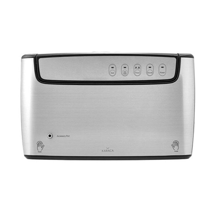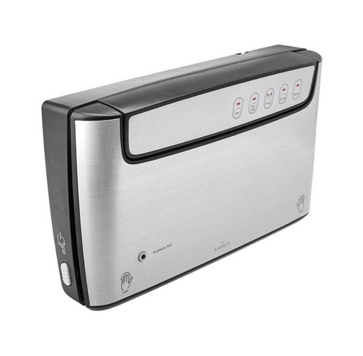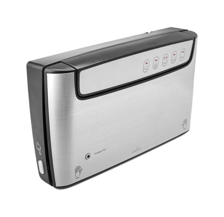 با عملکرد Seal میتوانید در صورت نیاز، کیسههای سخت و ضخیم یا بستههای آجیل و غیره را که قبلاً باز شدهاند، بدون هیچ گونه عملیات وکیوم، دوباره آب بندی کنید. با عملکرد خلاء/ مهر و موم، می توانید زمان خلاء و فشار مواد غذایی حساس را به تنهایی تنظیم کنید و از تغییر شکل غذاها جلوگیری کنید. می توانید با انتخاب یکی از گزینه های غذای خشک (خشک) یا غذای آبکی/تند (مرطوب) از عملکرد غذا و سپس فشار دادن دکمه Vac/Seal، غذای خود را خشک یا با سس وکیوم کنید. فرآیند وکیوم را می توان در هر زمان خاتمه داد و بر اساس ترجیح شما تنظیم کرد. برای این کار کافی است دکمه فشار داده شده در ابتدای فرآیند را دوباره فشار دهید. می توانید انتهای باز کیسه ها را با یک لمس ببندید. دارای قابلیت خاموش شدن خودکار است. یک کیسه وکیوم رولی دندانه دار به طول 2 متر (تقریباً 10 بار استفاده) به همراه محصول هدیه داده می شود.