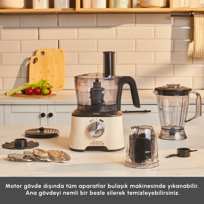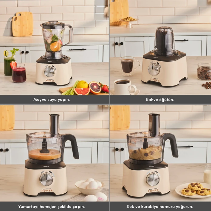 این دستگاه عملکردهای خرد کردن ، مخلوط کردن ، آسیاب کردن ، رنده کردن ، برش دادن ، ورز دادن و هم زدن را به همراه 10 دستگاه مختلف خود ارائه می دهد.