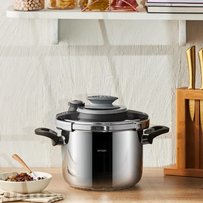 زودپز و بخارپز امسان ساخت کشور ترکیه میباشد .برند امسان از مشهورترین و باکیفیت ترین برندهای شناخته شده در سراسر جهان میباشد.و همانطور که میدانید امنیت کار با دستگاه زودپز مساله بسیار مهمی است که در تمام دنیا مصرفکنندگان به عنوان یک پارامتر مهم درنظر میگیرند، که با انتخاب این محصول استاندارد در رده ی جهانی میتوانید با خیال آسوده به آشپزی و پخت و پز در آشپزخانه بپردازید همچنین بر روی درب این محصول سوپاپ سه حالته فشار پخت تعبیه شده است .این محصول داری سیستم بازو بسته کردن درب ارگونومیکی میباشد که بازو بسته کردن درب را بسیار ساده و راحت انجام میشود.به صورتی طراحی و تولید شده که حرارت را بصورت مساوی به غذای در حال پخت انتقال میدهد.حجم این زودپز 6 لیتر میباشد جنس بیرون و داخل از استیل میباشد.