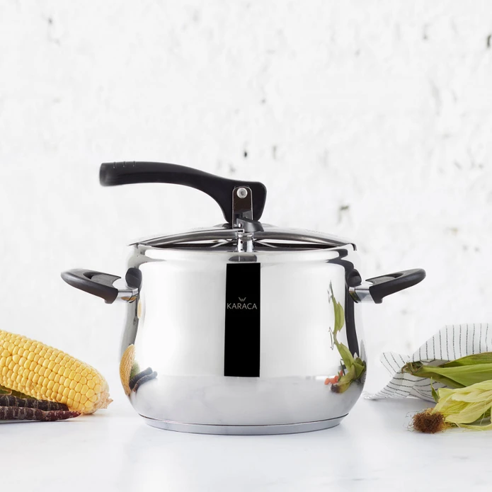 زودپز و بخارپز کاراجا ساخت کشور ترکیه میباشد .برند کاراجا از مشهورترین و باکیفیت ترین برندهای شناخته شده در سراسر جهان میباشد.و همانطور که میدانید امنیت کار با دستگاه زودپز مساله بسیار مهمی است که در تمام دنیا مصرفکنندگان به عنوان یک پارامتر مهم درنظر میگیرند، که با انتخاب این محصول استاندارد در رده ی جهانی میتوانید با خیال آسوده به آشپزی و پخت و پز در آشپزخانه بپردازید همچنین بر روی درب این محصول سوپاپ سه حالته فشار پخت تعبیه شده است .این محصول داری سیستم بازو بسته کردن درب ارگونومیکی میباشد که بازو بسته کردن درب را بسیار ساده و راحت انجام میشود.به صورتی طراحی و تولید شده که حرارت را بصورت مساوی به غذای در حال پخت انتقال میدهد.حجم این زودپز 8 لیتر میباشد جنس بیرون و داخل از استیل میباشد.