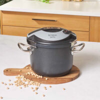 زودپز و بخارپز دوقلوی کاراجا ساخت کشور ترکیه میباشد .این ست دارای دو دیگ 8 و 6 لیتری می باشد . به همراه دستگاه یک درب قابلمه ای و یک درب زودپز عرضه شده است .دربهای فوق به هر دو دیگ 8 و 6 لیتری قابل اتصال است پس در اصل شما دو زودپز در اندازه های مختلف دارید و دو قابلمه در دو اندازه در واقع شما با خرید این محصول در واقع 4 محصول خریده اید 2 قابلمه و 2زودپز که این مورد یکی از ویژگیهای این مدل به حساب می آید.در صورت تمایل به پخت کمتر از دیگ کوچکتر و برای پخت بیشتر از دیگ بزرگتر می توان استفاده نمود.برند کاراجا از مشهورترین و باکیفیت ترین برندهای شناخته شده در سراسر جهان میباشد.و همانطور که میدانید امنیت کار با دستگاه زودپز مساله بسیار مهمی است که در تمام دنیا مصرفکنندگان به عنوان یک پارامتر مهم درنظر میگیرند، که با انتخاب این محصول استاندارد در رده ی جهانی میتوانید با خیال آسوده به آشپزی و پخت و پز در آشپزخانه بپردازید همچنین بر روی درب این محصول سوپاپ سه حالته فشار پخت تعبیه شده است .این محصول داری سیستم بازو بسته کردن درب ارگونومیکی میباشد که بازو بسته کردن درب را بسیار ساده و راحت انجام میشود.به صورتی طراحی و تولید شده که حرارت را بصورت مساوی به غذای در حال پخت انتقال میدهد.