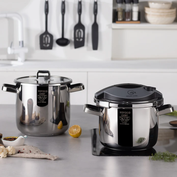 زودپز و بخارپز دوقلوی کاراجا ساخت کشور ترکیه میباشد .این ست دارای دو دیگ 6 و 8 لیتری می باشد . به همراه دستگاه یک درب قابلمه ای و یک درب زودپز عرضه شده است .دربهای فوق به هر دو دیگ 6 و 8 لیتری قابل اتصال است پس در اصل شما دو زودپز در اندازه های مختلف دارید و دو قابلمه در دو اندازه در واقع شما با خرید این محصول در واقع 4 محصول خریده اید 2 قابلمه و 2زودپز که این مورد یکی از ویژگیهای این مدل به حساب می آید.در صورت تمایل به پخت کمتر از دیگ کوچکتر و برای پخت بیشتر از دیگ بزرگتر می توان استفاده نمود.برند کاراجا از مشهورترین و باکیفیت ترین برندهای شناخته شده در سراسر جهان میباشد.و همانطور که میدانید امنیت کار با دستگاه زودپز مساله بسیار مهمی است که در تمام دنیا مصرفکنندگان به عنوان یک پارامتر مهم درنظر میگیرند، که با انتخاب این محصول استاندارد در رده ی جهانی میتوانید با خیال آسوده به آشپزی و پخت و پز در آشپزخانه بپردازید همچنین بر روی درب این محصول سوپاپ سه حالته فشار پخت تعبیه شده است .این محصول داری سیستم بازو بسته کردن درب ارگونومیکی میباشد که بازو بسته کردن درب را بسیار ساده و راحت انجام میشود.به صورتی طراحی و تولید شده که حرارت را بصورت مساوی به غذای در حال پخت انتقال میدهد.