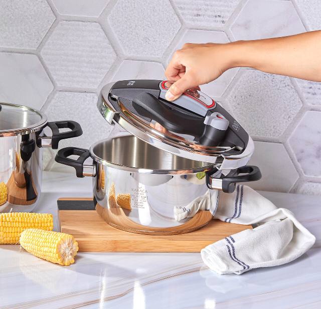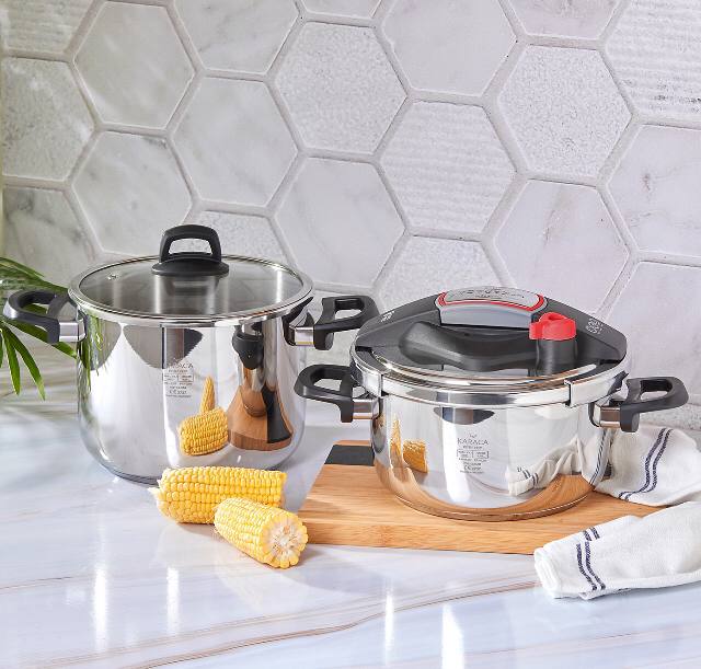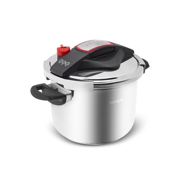 زودپز و بخارپز دوقلوی کاراجا ساخت کشور ترکیه میباشد .این ست دارای دو دیگ 4 و 6 لیتری می باشد . به همراه دستگاه یک درب قابلمه ای و یک درب زودپز عرضه شده است .دربهای فوق به هر دو دیگ 4 و 6 لیتری قابل اتصال است پس در اصل شما دو زودپز در اندازه های مختلف دارید و دو قابلمه در دو اندازه در واقع شما با خرید این محصول در واقع 4 محصول خریده اید 2 قابلمه و 2زودپز که این مورد یکی از ویژگیهای این مدل به حساب می آید.در صورت تمایل به پخت کمتر از دیگ کوچکتر و برای پخت بیشتر از دیگ بزرگتر می توان استفاده نمود.برند کاراجا از مشهورترین و باکیفیت ترین برندهای شناخته شده در سراسر جهان میباشد.و همانطور که میدانید امنیت کار با دستگاه زودپز مساله بسیار مهمی است که در تمام دنیا مصرفکنندگان به عنوان یک پارامتر مهم درنظر میگیرند، که با انتخاب این محصول استاندارد در رده ی جهانی میتوانید با خیال آسوده به آشپزی و پخت و پز در آشپزخانه بپردازید همچنین بر روی درب این محصول سوپاپ سه حالته فشار پخت تعبیه شده است .این محصول داری سیستم بازو بسته کردن درب ارگونومیکی میباشد که بازو بسته کردن درب را بسیار ساده و راحت انجام میشود.به صورتی طراحی و تولید شده که حرارت را بصورت مساوی به غذای در حال پخت انتقال میدهد.