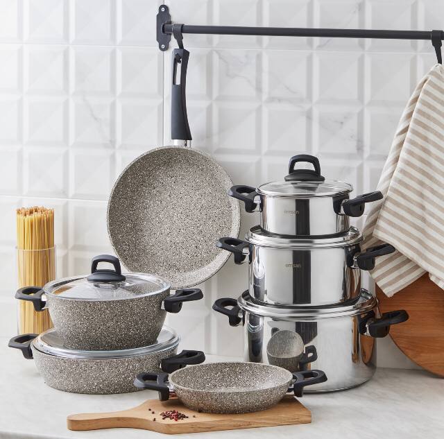 قابلمه های ساخته شده از مواد گرانیت یکی از بهترین انواع ظروف است که در آن می توانید غذاهای بسیار سالم و خوشمزه ای بپزید. با خواص فوق العاده بادوام، ضد خش و نچسب یکی از محبوب ترین ها در آشپزخانه است. مدل های ظروف گرانیت زیستی امسان که در مقایسه با نمونه های خود تا 7 برابر در برابر خط و خش مقاوم هستند، فناوری پیشرفته ای را به آشپزخانه شما می آورند. ست 7 تکه قابلمه گرانیتی امسان جدید با نمای بیرونی ضد لک، طراحی عالی، قدرت و طعم با ارزش ترین مورد در آشپزخانه شما خواهد بود. آیا می دانستید؟ مواد اولیه گرانیت تولید شده در سوئیس با نام تجاری کاراجا به سراسر جهان فروخته می شود.(امسان نیز زیرمجموعه شرکت کاراجا میباشد )
