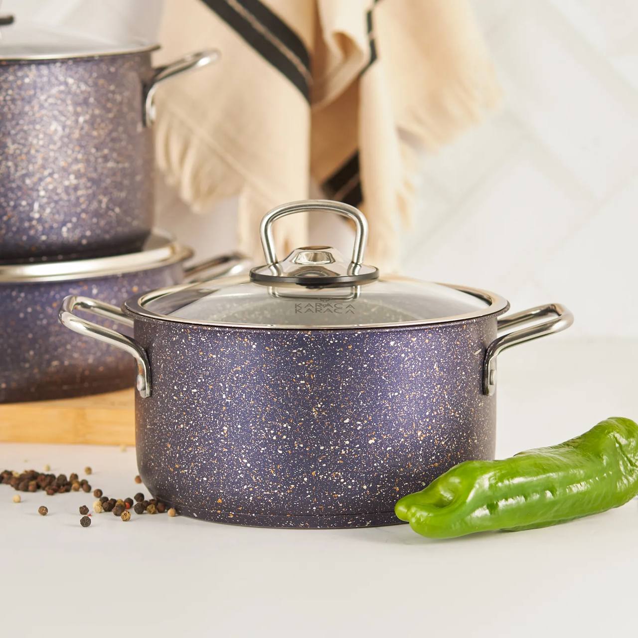 قابلمه های ساخته شده از مواد بیو گرانیت یکی از بهترین انواع ظروف است که در آن می توانید غذاهای بسیار سالم و خوشمزه ای بپزید. با خواص فوق العاده بادوام، ضد خش و نچسب یکی از محبوب ترین ها در آشپزخانه است. مدل های ظروف گرانیت زیستی کاراجا که در مقایسه با نمونه های خود تا 7 برابر در برابر خط و خش مقاوم هستند، فناوری پیشرفته ای را به آشپزخانه شما می آورند. ست 7 تکه قابلمه گرانیتی کاراجا جدید با نمای بیرونی ضد لک، طراحی عالی، قدرت و طعم با ارزش ترین مورد در آشپزخانه شما خواهد بود. آیا می دانستید؟ مواد اولیه گرانیت تولید شده در سوئیس با نام تجاری کاراجا به سراسر جهان فروخته می شود. چرا بیوگرانیت؟ زیرا سالم است. این یک محصول با تکنولوژی پیشرفته است. مواد مورد استفاده در تولید دارای گواهینامه هستند و هیچ گونه مواد مضری ندارند. با سطح تقویت شده گرانیت مانند خود در برابر خراش مقاومت فوق العاده ای دارد. به دلیل حداکثر ویژگی نچسب غیر قابل احتراق، ضد لک است و به راحتی تمیز می شود. نسبت به نمونه های خود تا 7 برابر در برابر خط و خش مقاوم است. قابل شستشو در ماشین ظرفشویی می باشد.