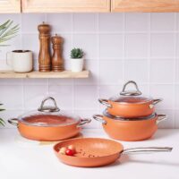 قابلمه های ساخته شده از مواد بیو گرانیت یکی از بهترین انواع ظروف است که در آن می توانید غذاهای بسیار سالم و خوشمزه ای بپزید. با خواص فوق العاده بادوام، ضد خش و نچسب یکی از محبوب ترین ها در آشپزخانه است. مدل های ظروف گرانیت زیستی کاراجا که در مقایسه با نمونه های خود تا 7 برابر در برابر خط و خش مقاوم هستند، فناوری پیشرفته ای را به آشپزخانه شما می آورند. ست 9 تکه قابلمه گرانیتی کاراجا جدید با نمای بیرونی ضد لک، طراحی عالی، قدرت و طعم با ارزش ترین مورد در آشپزخانه شما خواهد بود. آیا می دانستید؟ مواد اولیه گرانیت تولید شده در سوئیس با نام تجاری کاراجا به سراسر جهان فروخته می شود. چرا بیوگرانیت؟ زیرا سالم است. این یک محصول با تکنولوژی پیشرفته است. مواد مورد استفاده در تولید دارای گواهینامه هستند و هیچ گونه مواد مضری ندارند. با سطح تقویت شده گرانیت مانند خود در برابر خراش مقاومت فوق العاده ای دارد. به دلیل حداکثر ویژگی نچسب غیر قابل احتراق، ضد لک است و به راحتی تمیز می شود. نسبت به نمونه های خود تا 7 برابر در برابر خط و خش مقاوم است. قابل شستشو در ماشین ظرفشویی می باشد.