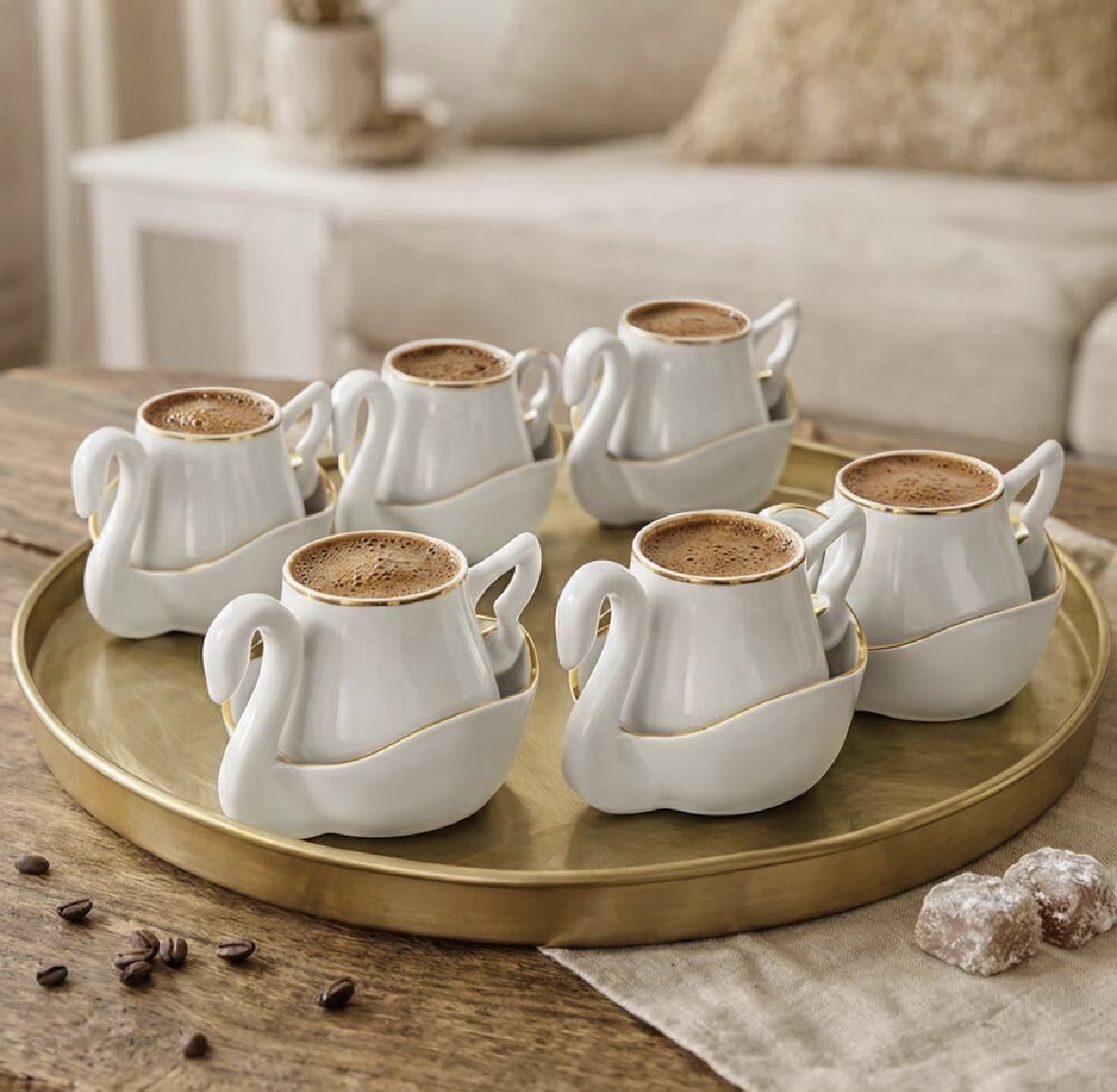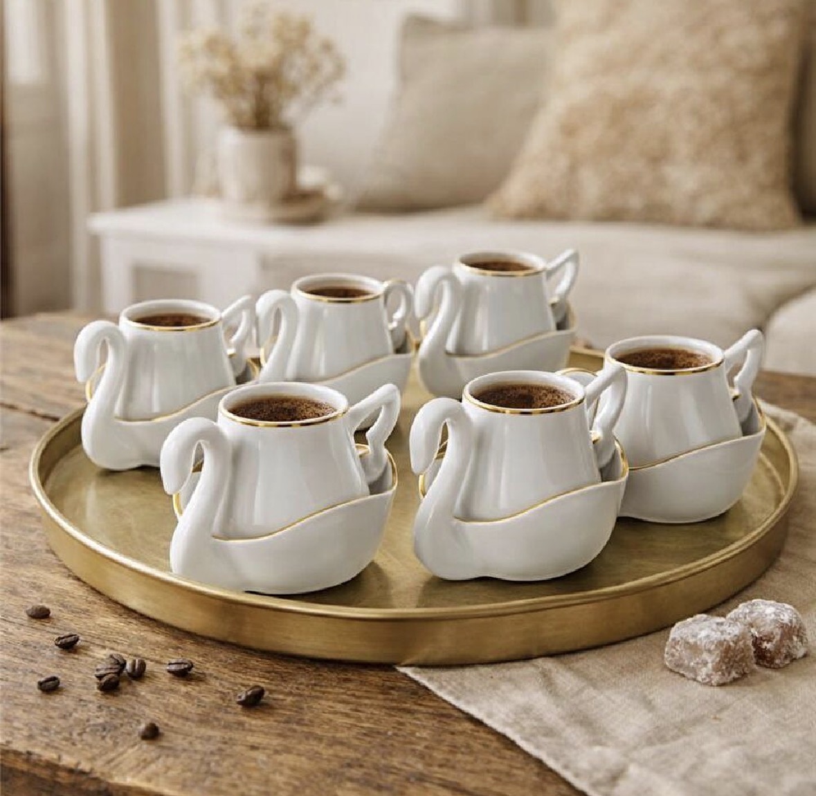 ست قهوه خوری کاراجا مدل 6 نفره مدل swan طرح قو