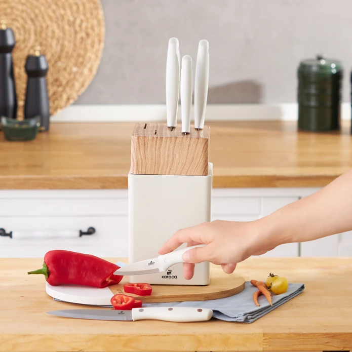 ست کارد آشپزخانه استندی کاراجا مدل Mastercut سفید