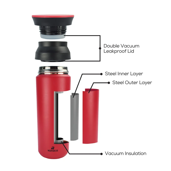 فلاسک کاراجا به دلیل پوشش وکیوم کاربردی و سطح داخلی و خارجی استیل با کیفیت 304 ضد