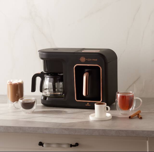 قهوه ترک ، قهوه با شیر ، شیرکاکائو ، هات چاکلت، جوشاندن شیر ، دم کردن چای و دم کردن قهوه یا (فیلتر قهوه) رو حالا با این دستگاه 5 کاره کاراجا میتونید تهیه کنید !