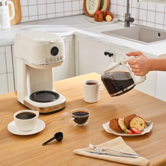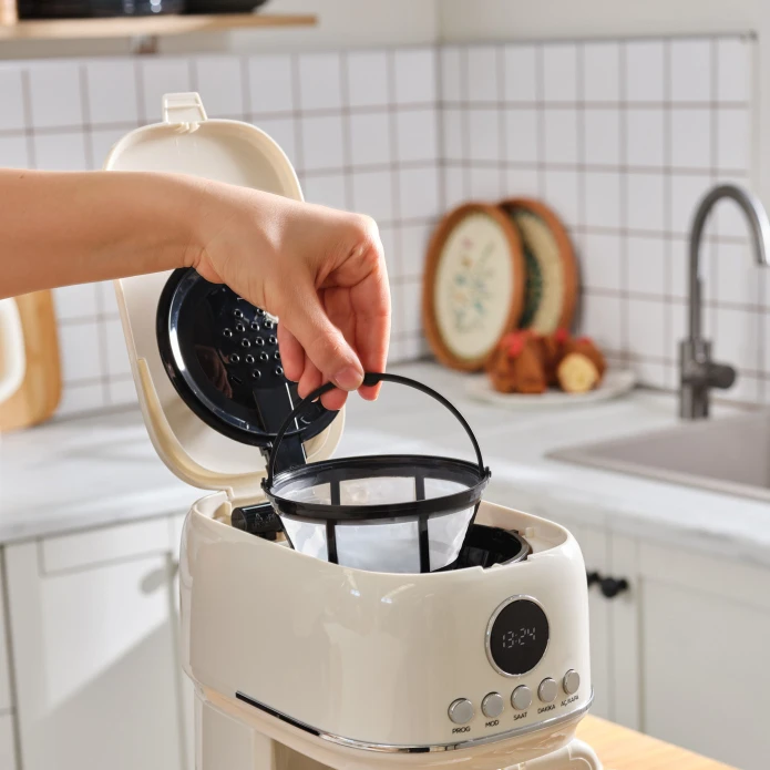 شما کافی است آب را از بالا به دستگاه اضافه کنید و قهوه را به قوری بریزید و دکمه را فشار دهید این دستگاه شروع به دم کردن قهوه شما میکند و ظرف مدت 10 دقیقه به شما قهوه دم کشیده را تحویل میدهد.دستگاه قهوه ساز در 1 عطر قهوه با ظرفیت دم کردن 10 فنجان قهوه به طور همزمان، قهوه شما را در ایده آل ترین دما دم می کند و طعم آن را به حداکثر می رساند. در حالی که با قوری شیشه ای و فیلتر استفاده سالمی را ارائه می دهد، تا 35 دقیقه قهوه شمارو گرم نگه میدارد برای استفاده های بعد و پس از آن بصورت اتوماتیک خاموش میشود.