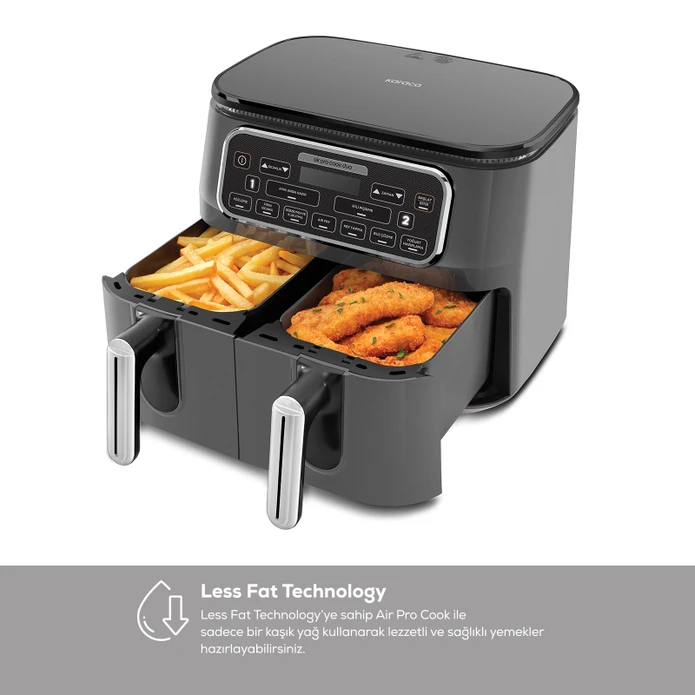 هواپز کاراجا این فرصت را به شما می دهد تا بسیاری از غذاها مانند سیب زمینی سرخ کرده، مرغ، ماهی، گوشت قرمز، کوفته و شاه بلوط را به سرعت آماده کنید و در عین حال میزان روغن زائد را که به محیط زیست آسیب می رساند در مقایسه با روش های سنتی سرخ کردنی به حداقل می رساند. یعنی با استفاده از 1 قاشق روغن یا حتی بدون روغن بهترین و لذت بخش ترین غذاها با فناوری پخت هواپز در اختیار شماست.