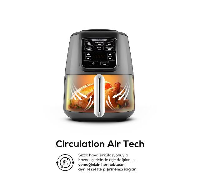 با حجم بالای 4 لیتری(قرار گرفتن یک مرغ کامل به راحتی ) خود بشقاب غذاهای لذیذ را برای شما به ارمغان می آورد. با فناوری جریان هوای گرم از بالا به پایین Circulation Air Tech، تمام قسمت های غذای شما را به طور یکنواخت می پزد.