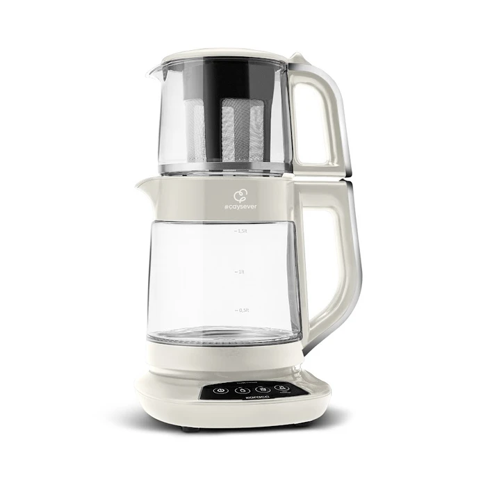 دم کردن چای در 15 دقیقه با استفاده از روش تقطیر ، دم کردن چای بسیار خوشمزه تر را تضمین می کند. با داشتن رنگ و طعم ایده آل در دمای 90 درجه، چای می تواند به مدت 60 دقیقه تازه بماند. نشانگر نور این امکان را برای شما فراهم می کند که به راحتی بتوانید چای شما را تازه نگه دارید. با این نسل جدید چای ساز که دارای قوری شیشه ای 0.8 لیتری و کتری شیشه ای با ظرفیت 1.9 لیتر است