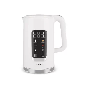 حجم داخلی 1/7 لیتری با قدرت 2200 وات در کمترین زمان ممکن آب رو به دمای 100 درجه میرساند که در قسمت جلویی از چراغ آن قابل مشاهده میباشد.قابلیت چرخش 360 درجه بروی کفه کتری دارد. قابلیت قطع اتوماتیک و سیستم گرم نگهدارنده اتوماتیک هم دارد.جنس داخل و بیرونی از استیل میباشد.این دستگاه دوجداره میباشد و سطح بیرونی این دستگاه به هیچ عنوان داغ نمیشود. صفحه نمایش ال ای دی این محصول با دکمه های لمسی این کتری برقی میتوان از 40 – 80 – 85 – 90 تا 100 درجه دمای دلخواه را انتخاب کرد.