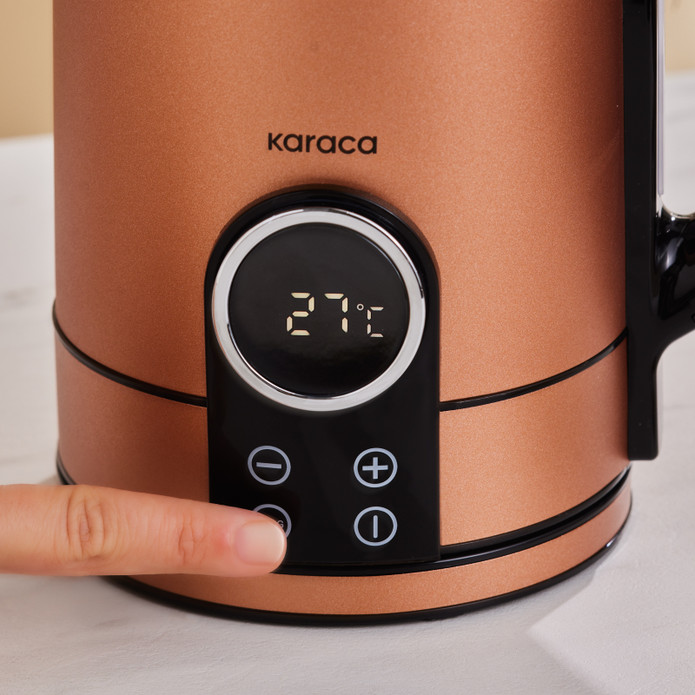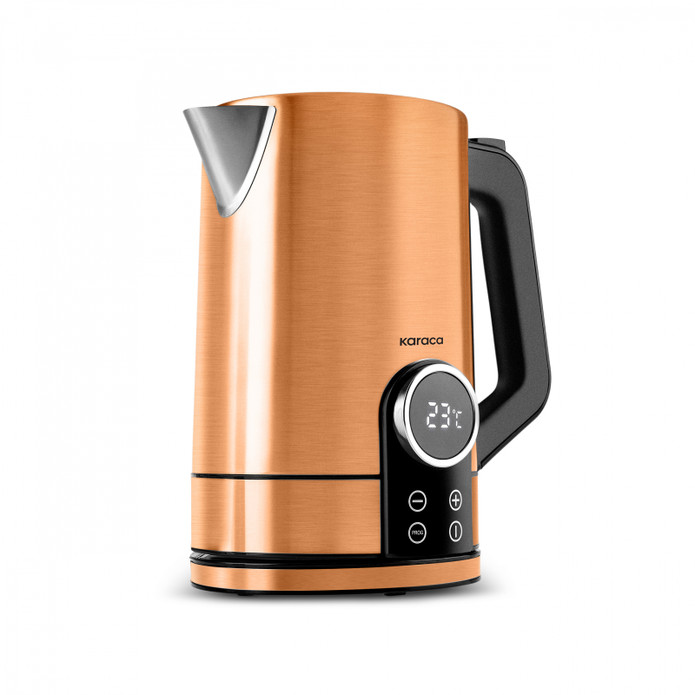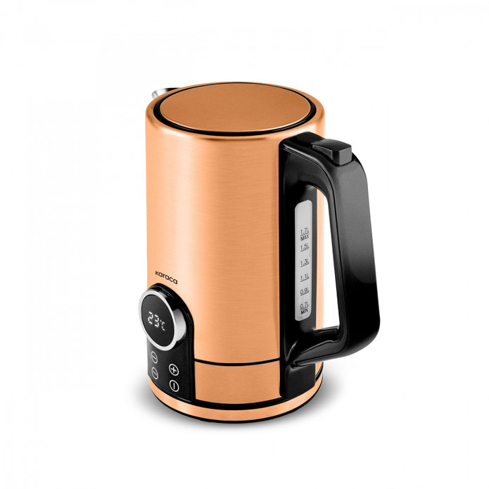 حجم داخلی 1/7 لیتری با قدرت 2200 وات در کمترین زمان ممکن آب رو به دمای 100 درجه میرساند که در قسمت جلویی از چراغ آن قابل مشاهده میباشد.قابلیت چرخش 360 درجه بروی کفه کتری دارد. قابلیت قطع اتوماتیک و سیستم گرم نگهدارنده اتوماتیک هم دارد.جنس داخل و بیرونی از استیل میباشد.صفحه نمایش ال ای دی این محصول با دکمه های لمسی این کتری برقی میتوان از 1 تا 100 درجه دمای دلخواه را انتخاب کرد.
