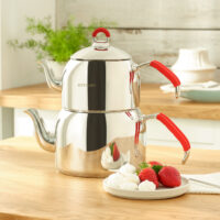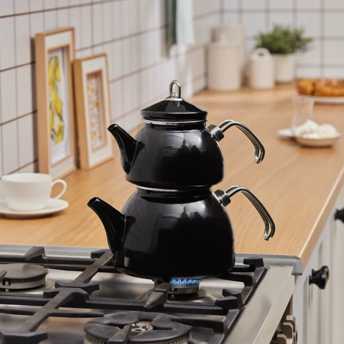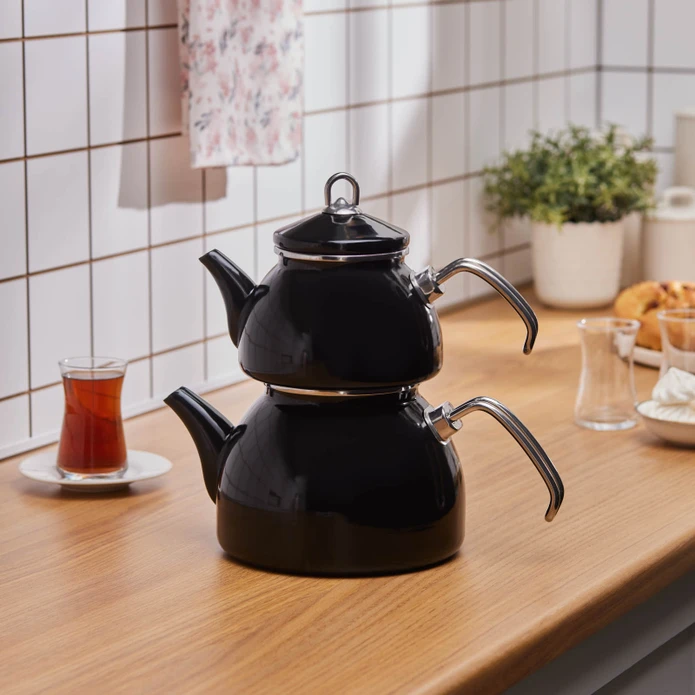 نیز استفاده فراوانی دارد. با ست کتری قوری لعابی کاراجا همانطور که غذاهایی که در قابلمه یا تابه های لعابی تهیه می شوند خوشمزه هستند، چای ها نیز خوشمزه هستند. دهانه های کتری و قوری به طور